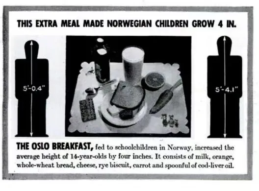 如果说,早餐吃对,孩子能多长10cm,家长们会不会重点审视下每天给孩子们吃的早餐? 而这个说法并非夸张,90年前一份鼎鼎有名的“奥斯陆早餐”,让挪威的中学生平均身高增长了10cm。这份早餐是由两片涂了黄油的全麦面包、一根香肠或者一片奶酪、半个苹果或半个橙子、236毫升鲜牛奶以及一根胡萝卜组成的。