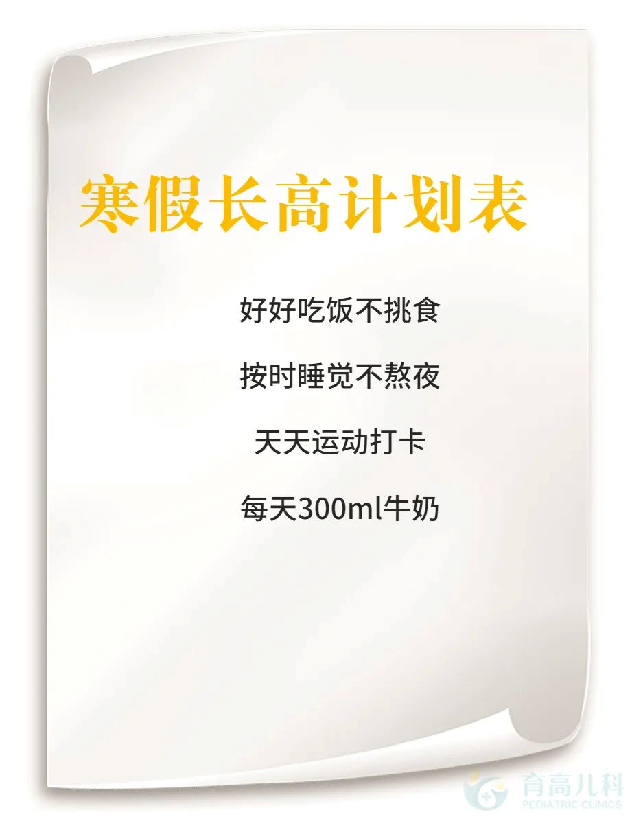 今年由于疫情放开,不少学校收到提前放假的通知。较以往而言,孩子这个寒假时间更长。育高儿科提醒:家长可以充分利用孩子寒假的时间,进行身高管理,培养孩子良好的长高习惯,为春天长高打好基础。